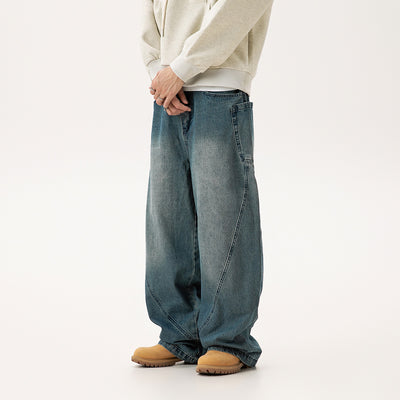 Curved Denim Men's Stitching Trousers